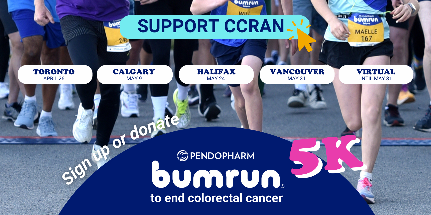 Bumrun is an annual 5k run/walk event with races across Canada. By participating, you contribute to CCRAN's tireless fundraising efforts to increase awareness of colorectal cancer screening and prevention.